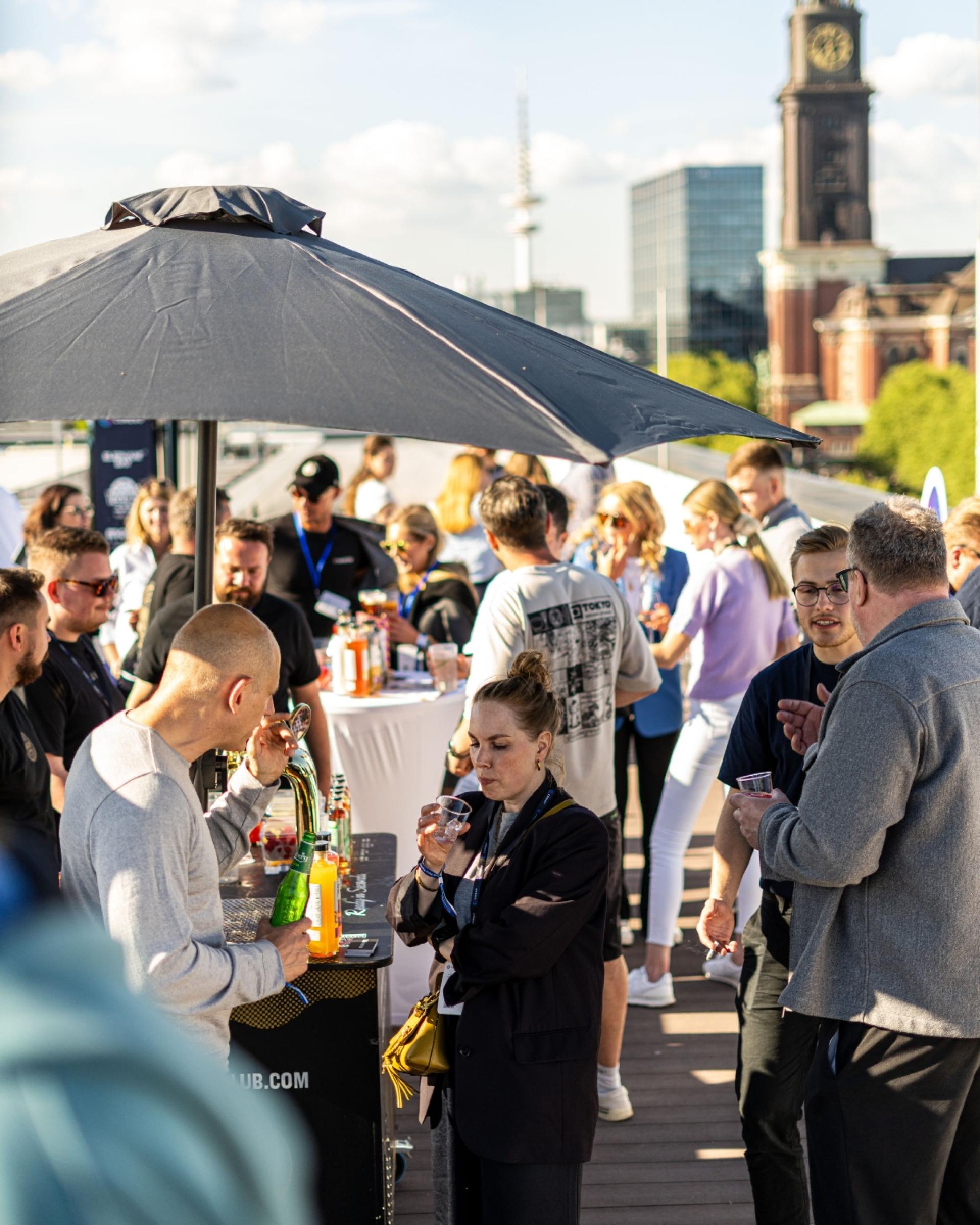 On Friday, starting at 12:00 noon, we invite you to a meet & greet on our rooftop terrace at the Landungsbrücken, just a stone's throw from the Reeperbahn.