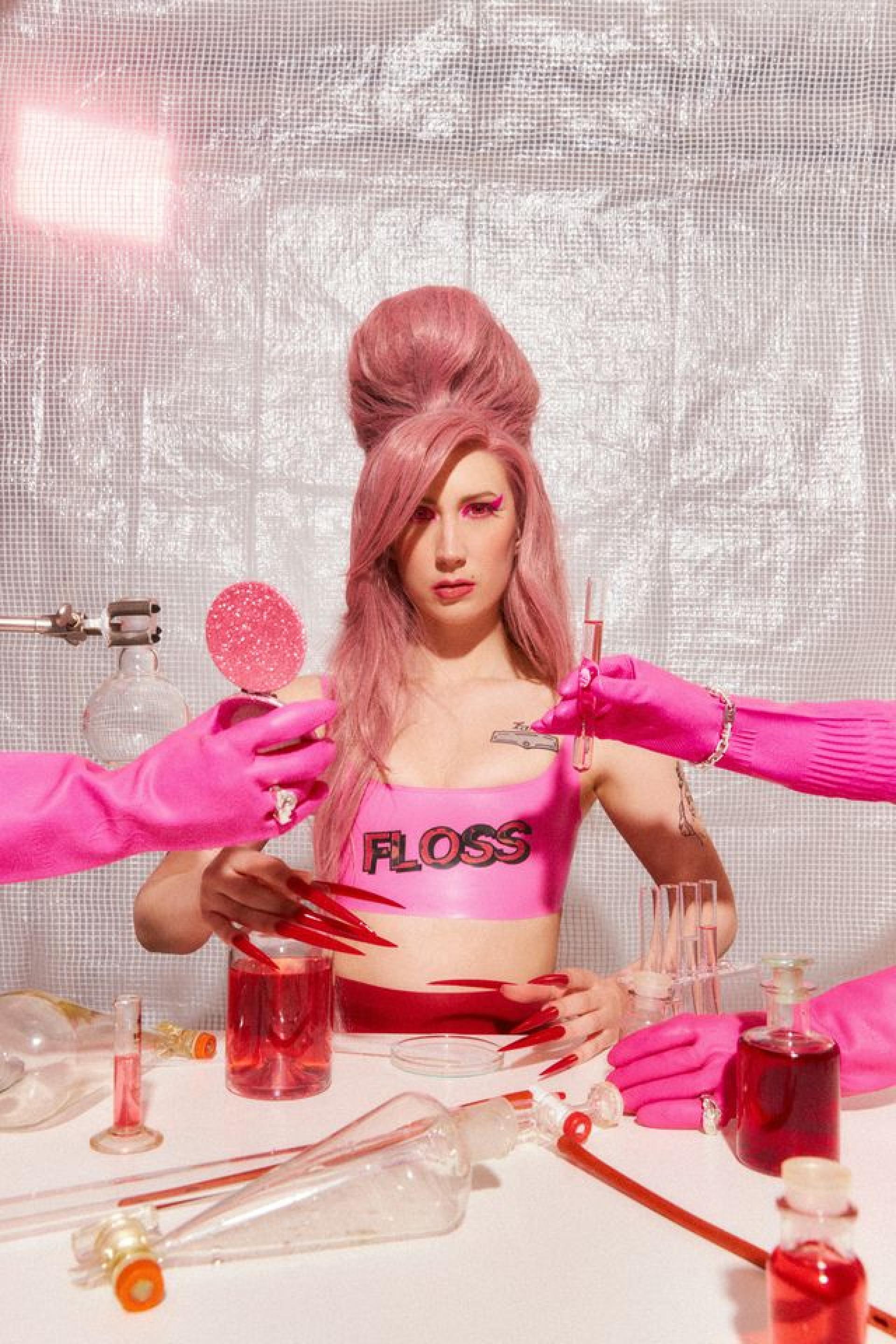Von VOGUE als „eine der spannendsten Newcomerinnen“ gefeiert, mischt die Berliner Künstlerin FLOSS Riot-Grrrl-Energie und Clubbeats zu Angry Feminist Techno Pop. Ihr Sound ist provokant und verspielt – irgendwo zwischen Uffie, Peaches und Berliner Raves –, ihr Style ein pinker Schlag ins Gesicht. Auch online nimmt die Lollapalooza Newcomerin kein Blatt vor den Mund: mit Millionen Views, Songs auf Major Spotify-Playlists und extravaganten Shows wächst aus dem Underground-Phänomen eine globale Bewegung.